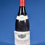1 bouteille, Morey-Saint-Denis 1er cru « Les blanchards », Jacky Truchot, 1995. Collerette et étiquette légèrement sale. L’étiquette est partiellement décollée sur son côté gauche et présente quelques petites déchirures.