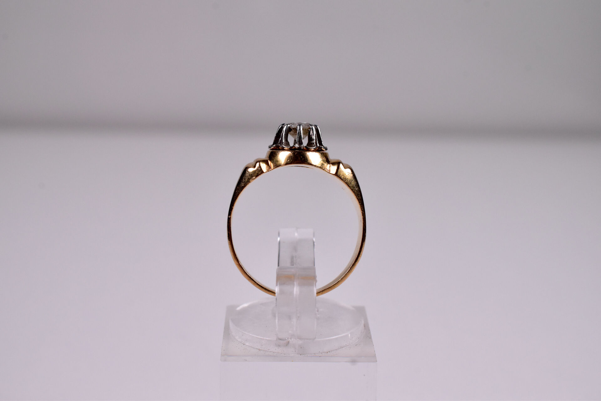 Bague en or jaune 18K 750/1000e et son diamant taille moderne d’environ 0,30 carat. TDD 52. Poids brut. : 4,4 g.
