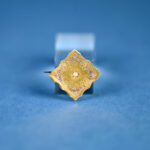 Broche en deux ors 18K 750/1000e et petite perle. Aiguille en métal. Poids brut. : 1,3 g.