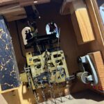 Coucou en bois sculpté partiellement peint. Forêt noire XXe siècle (fêles) Haut. : 69 cm – Larg. : 35 cm – Prof. : 16,5 cm.