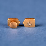 Deux boutons de col en or 750 millièmes à décor d’un blason en lapis-lazuli et de jaspe sanguin (un bouton accidenté). Poids brut : 3,6 g