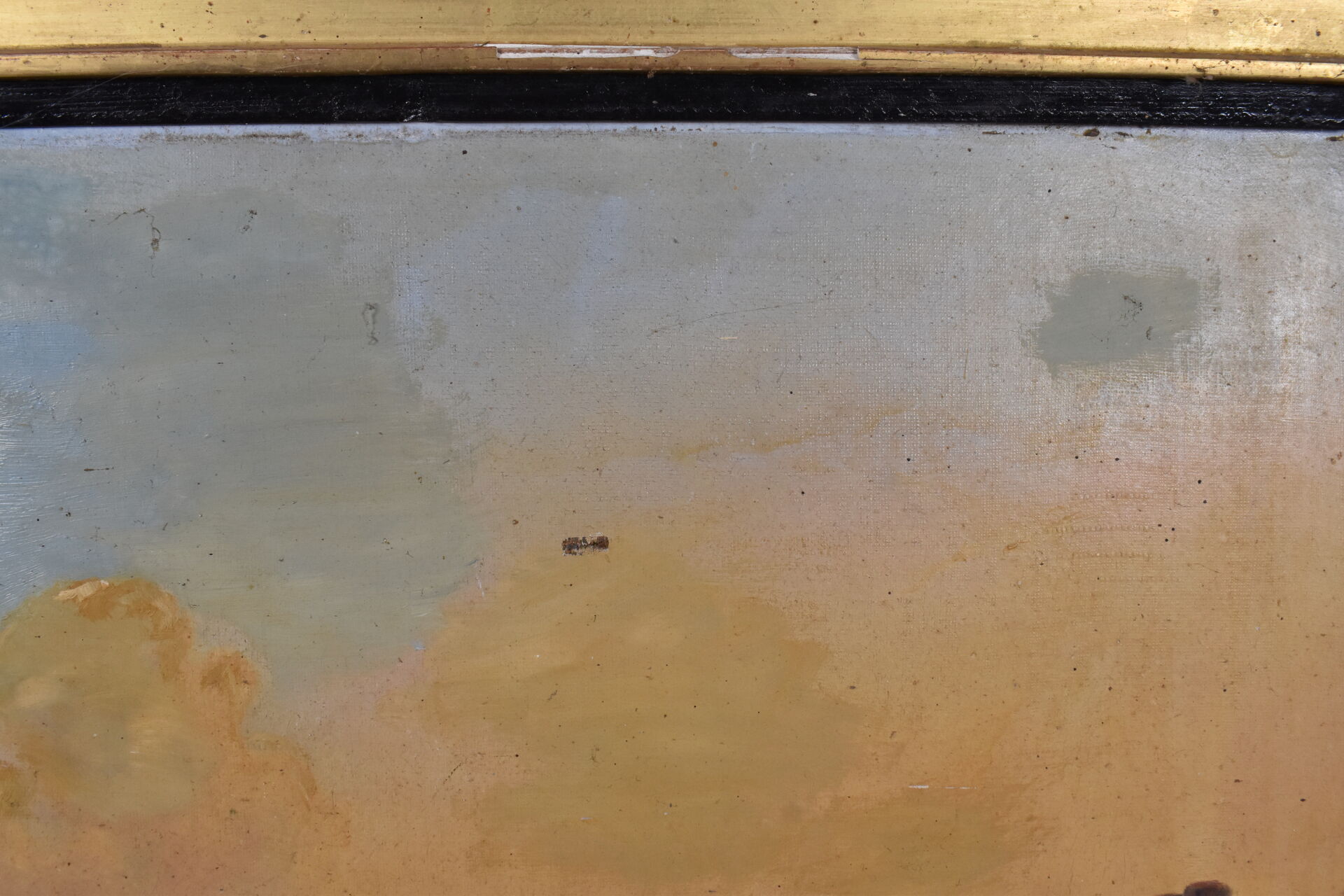 Huile sur toile (percée, sauts de peinture, gondolée, restaurations).