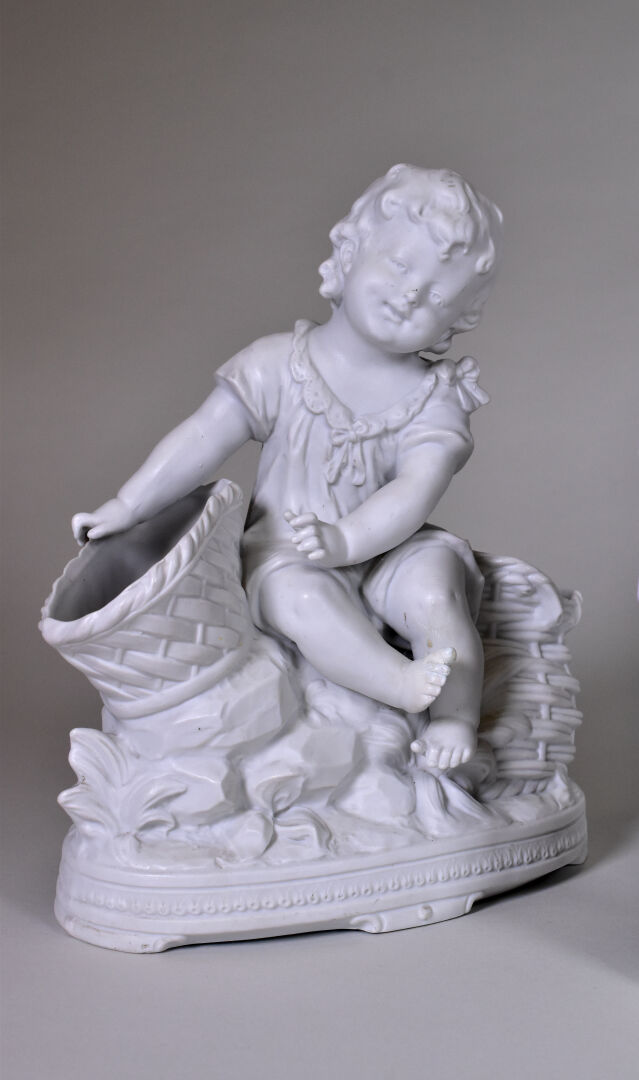 Ensemble de pièces en porcelaine et biscuit, principalement des vases et figurines (égrenures). 1 carton.