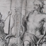 Gravé par THOMASSIN. Fontaine « Le Triumphe d’Apollon et de la vertu invincible ». Gravure en noir (pliures, salissures et petite déchirure). 31,5 x 43,5 cm.