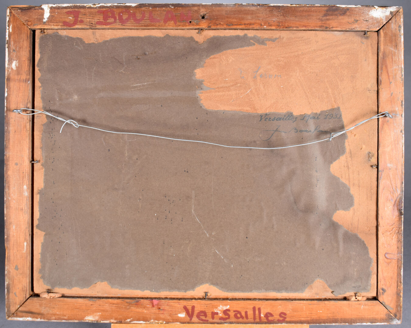 Jean-Marie BOULAN (XX). Vue du grand canal, Versailles. Huile sur carton signée en bas à droite. 27 x 35 cm.