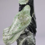 Sujet en pierre dure verte figurant un oiseau sur des rochers (égrenures). Chine, XXe siècle. Haut. : 21,5 cm.