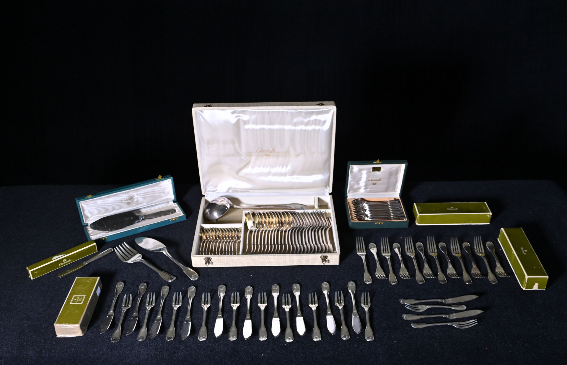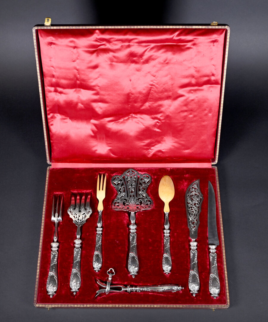 NOS LOTS EN VENTE AUX ENCHÈRES Lot n° 140 CHRISTOFLE. Partie de ménagère en métal argenté modèle… Estimation : 300 / 400 € Lot n° 139 Trois plats en métal argenté dont un gravé… Estimation : 10 / 20 € Lot n° 138 Paire de bougeoirs en bronze argenté à décor… Estimation : 40 / 60 € Lot n° 137 Dans son coffret d’époque XIX siècle, un ensemble… Estimation : 80 / 120 € Lot n° 136 PARIS, troisième quart du XIXe siècle. Théière en… Estimation : 280 / 320 € Lot n° 135 Jardinière de table à décor de rocailles en… Estimation : 60 / 100 € Lot n° 134 Suite de 12 couteaux à fruits à lames… Estimation : 200 / 300 € Lot n° 133 Partie de ménagère en métal argenté soit 12… Estimation : 50 / 100 € Lot n° 132 CHRISTOFLE. Plateau en métal argenté ciselé, la bordure… Estimation : 60 / 100 € Page1 Page2 Page3 Page4 Page5