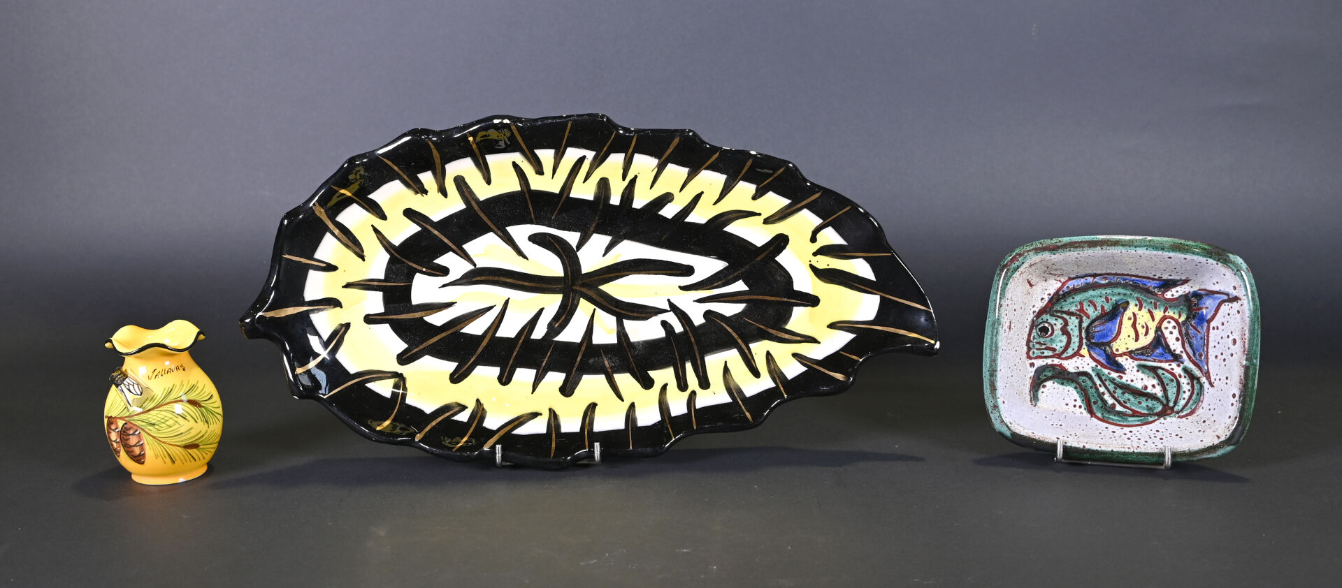 NOS LOTS EN VENTE AUX ENCHÈRES Lot n° 194 Miroir ovale en bronze doré à décor d’un… Estimation : 80 / 120 € Lot n° 192 Jean BOYER Limoges-France. Partie de service de table… Estimation : 40 / 80 € Lot n° 191 GIRAUD à Limoges. Carafe « Coq » en porcelaine peinte… Estimation : 30 / 60 € Lot n° 189 Nu féminin à genoux la tête posée sur… Estimation : 30 / 50 € Lot n° 188 GIEN. Service à artichauts en faïence à décor… Estimation : 40 / 60 € Lot n° 187 Femme au panier et à la gazelle en… Estimation : 50 / 80 € Lot n° 186 VALLAURIS. Ensemble en céramique soit une coupe en… Estimation : 50 / 100 € Lot n° 185 Vase ovoïde à anses et pietement en gradin… Estimation : 30 / 60 € Lot n° 184 Probablement VALENTINE. Paire de vases de mariée en… Estimation : 80 / 120 € Page1 Page2 Page3 Page4 Page5