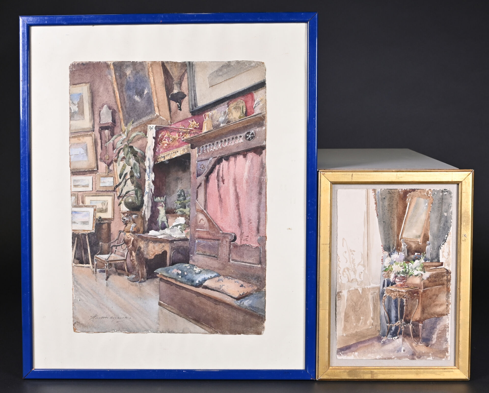 Lot n° 81 Antoinette MONTET-NOGANETS (XIXe siècle). Deux intérieurs bourgeois. Aquarelles,… Estimation : 50 / 100 €