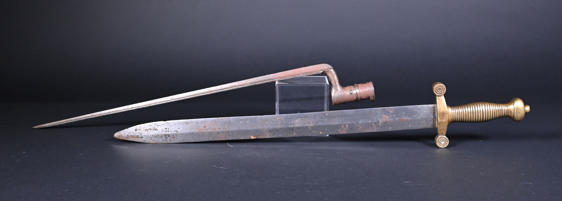 NOS LOTS EN VENTE AUX ENCHÈRES Lot n° 53 Baïonnette française modèle An IX. Manque virole. État… Estimation : 40 / 60 € Lot n° 52 Sabre briquet avec son fourreau. Lame manufacture de… Estimation : 80 / 120 € Lot n° 51 Épée d’escrime dans le goût d’une rapière à… Estimation : 40 / 60 € Lot n° 50 Épée à clavier du corps de Santé. Lame… Estimation : 60 / 80 € Lot n° 49 I.O.D modèle 1889 d’officier prussien. Lame droite à… Estimation : 60 / 80 € Lot n° 48 Pistolet de défense, à coffre et à percussion.… Estimation : 30 / 50 € Lot n° 47 Réplique italienne d’un pistolet à silex Harpers Ferry.… Estimation : 60 / 80 € Lot n° 46 Lot de deux casques, on y trouve :… Estimation : 80 / 120 € Lot n° 45 Sac à dos britannique en cuir étoile, daté… Estimation : 60 / 70 € Page1 Page2 Page3 Page4 Page5