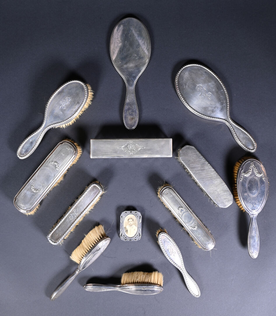 NOS LOTS EN VENTE AUX ENCHÈRES Lot n° 14 Ensemble de timbales et ronds de serviettes en… Estimation : 230 / 350 € Lot n° 13 Ensemble de brosses en argent 925/1000e et un… Estimation : 60 / 120 € Lot n° 12 Ensemble soit 3 couverts de service à manches… Estimation : 50 / 100 € Lot n° 11 Service à liqueur en argent 800/1000e et métal… Estimation : 70 / 86 € Lot n° 10 Fort ensemble de couverts de services à manches… Estimation : 80 / 150 € Lot n° 9 Paire de vases balustre à décor en émaux… Estimation : 60 / 80 € Lot n° 8 Huilier vinaigrier en verre soufflé, les cols en… Estimation : 30 / 60 € Lot n° 7 Trois plats en métal argenté dont un gravé… Estimation : 20 / 40 € Lot n° 6 Ensemble en argent 800/1000e et argent doré soit… Estimation : 40 / 60 € Page1 Page2 Page3 Page4 Page5