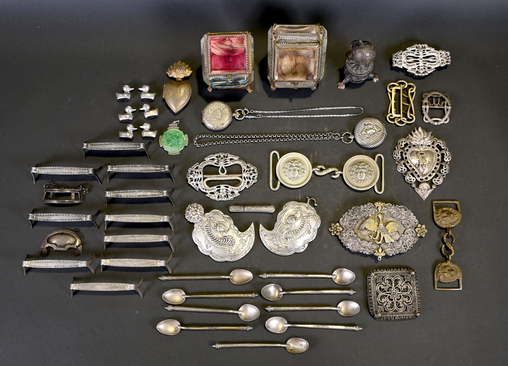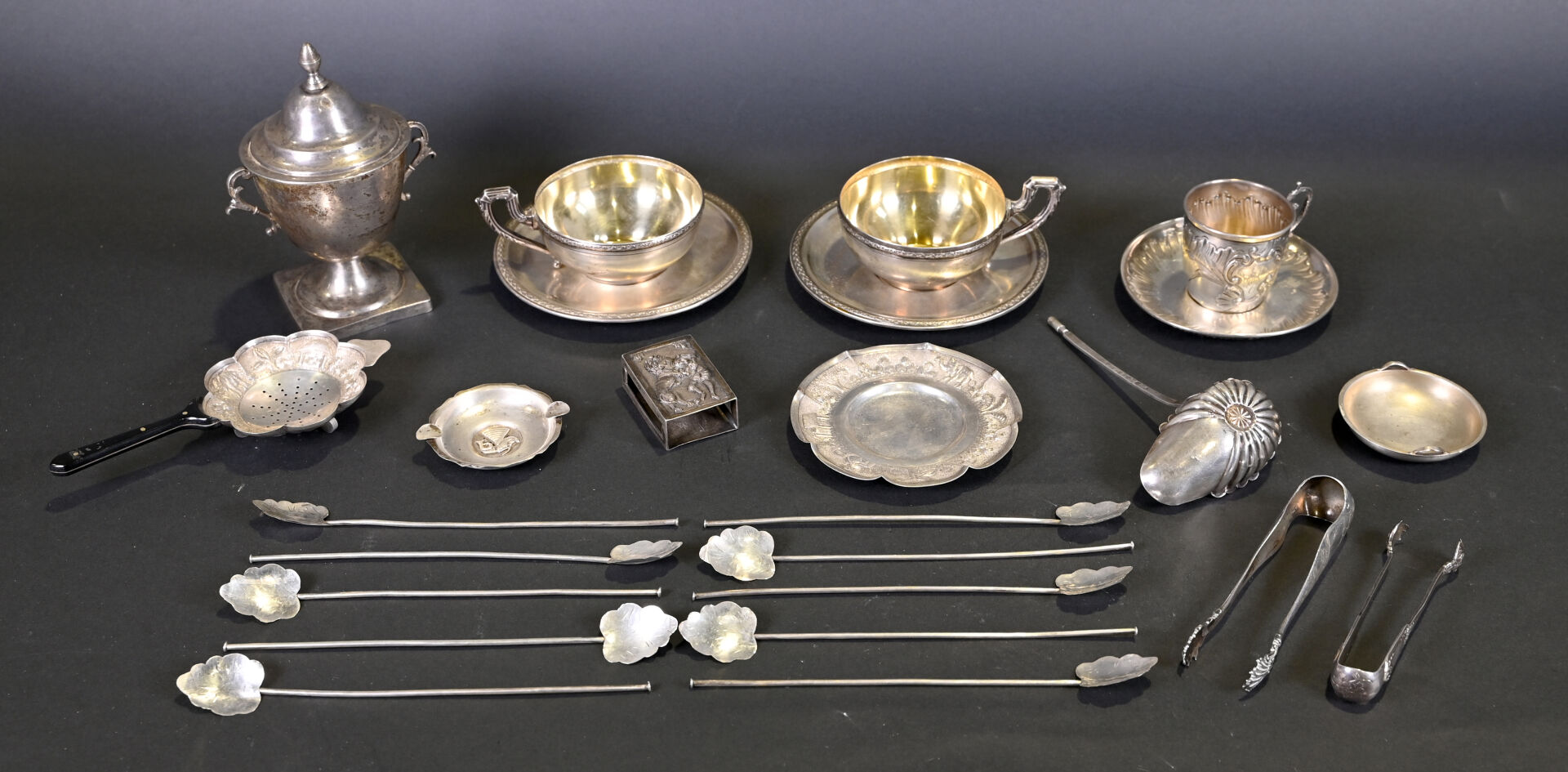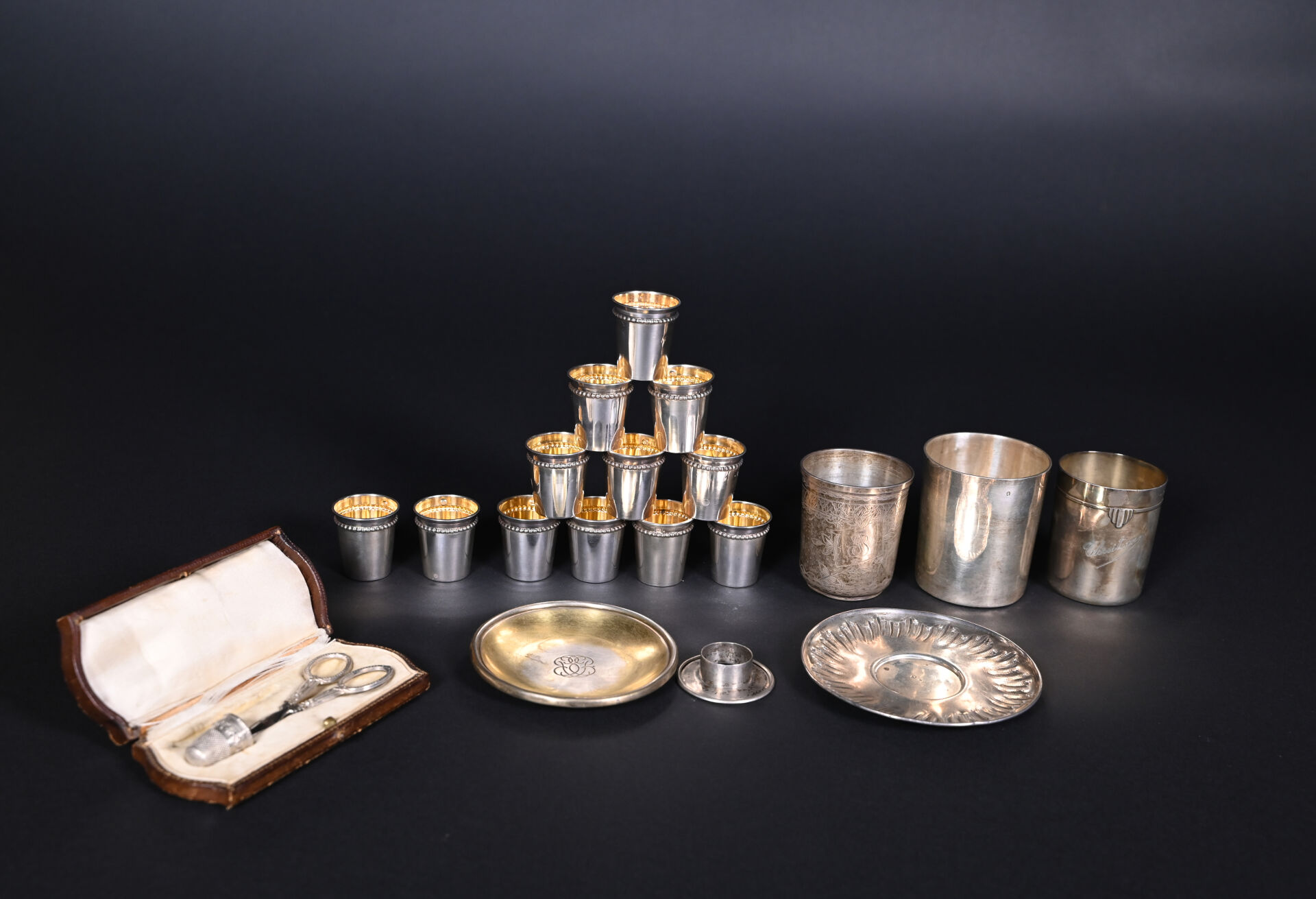 NOS LOTS EN VENTE AUX ENCHÈRES Lot n° 9 Ensemble en argent 925/1000e et 800/1000e dont timbales… Estimation : 200 / 400 € Lot n° 8 Ensemble de menus objets en métal, métal argenté… Estimation : 40 / 80 € Lot n° 7 Ensemble de couverts dépareillés en argent 925/1000e. On… Estimation : 150 / 200 € Lot n° 6 Service à mignardises à manches en argent fourré.… Estimation : 20 / 25 € Lot n° 5 Ensemble en argent 925/1000e et 800/1000e dont tasses… Estimation : 500 / 700 € Lot n° 4 Ensemble de menus objets en argent 925 et… Estimation : 150 / 200 € Lot n° 3 Ensemble en argent 925/1000e soit un taureau (accidenté)… Estimation : 50 / 80 € Lot n° 2 LEUCHARS & SON – GEFFROY Succ 2. Rue… Estimation : 50 / 80 € Lot n° 1 Coupe sur pied, le pied en argent 800/1000e… Estimation : 60 / 80 € Page1 Page2 Page3 Page4 Page5