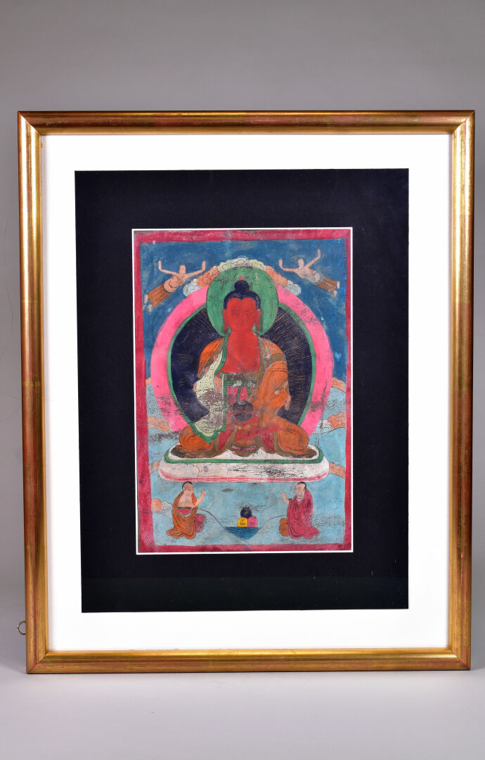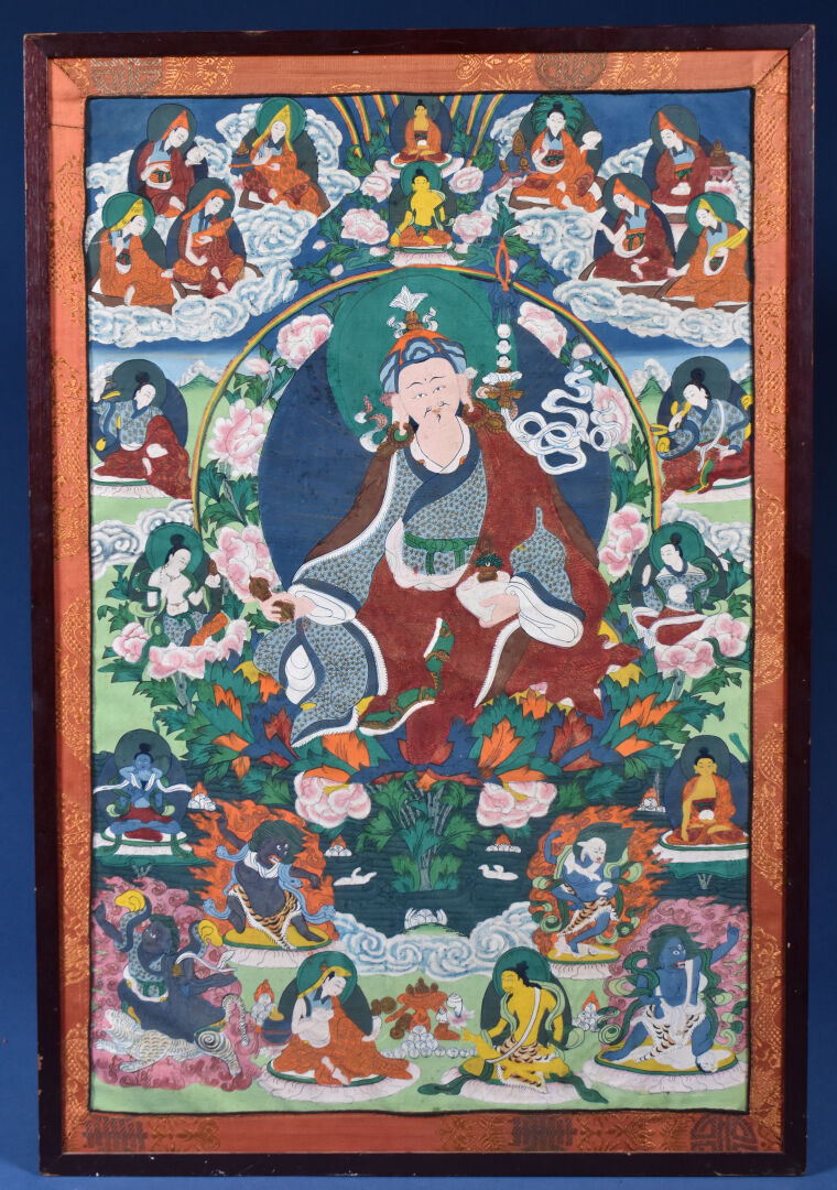 Lot n° 92 Adjugé : 20 € Tangka sur toile représentant Padma Sambava et Lamas.… Estimation : 20 / 40 €