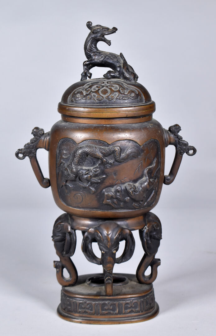 Lot n° 94 Adjugé : 100 € Sceau en bronze représentant un éléphant. Vietnâm. Haut.… Estimation : 15 / 30 €