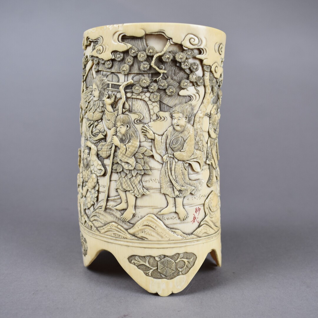 Lot n° 58,1 Adjugé : 450 € Porte-pinceau en ivoire (Ivoire d’Elephantidaes spi [I/A] pré-convention)… Estimation : 200 / 300 €