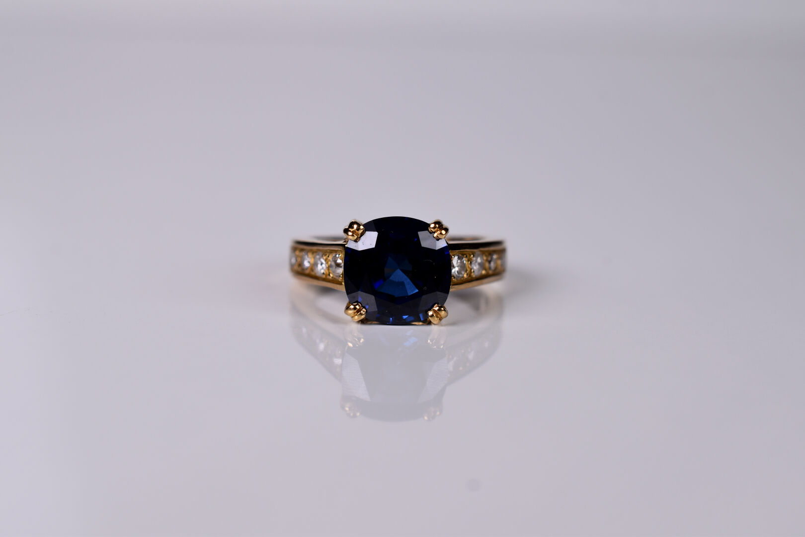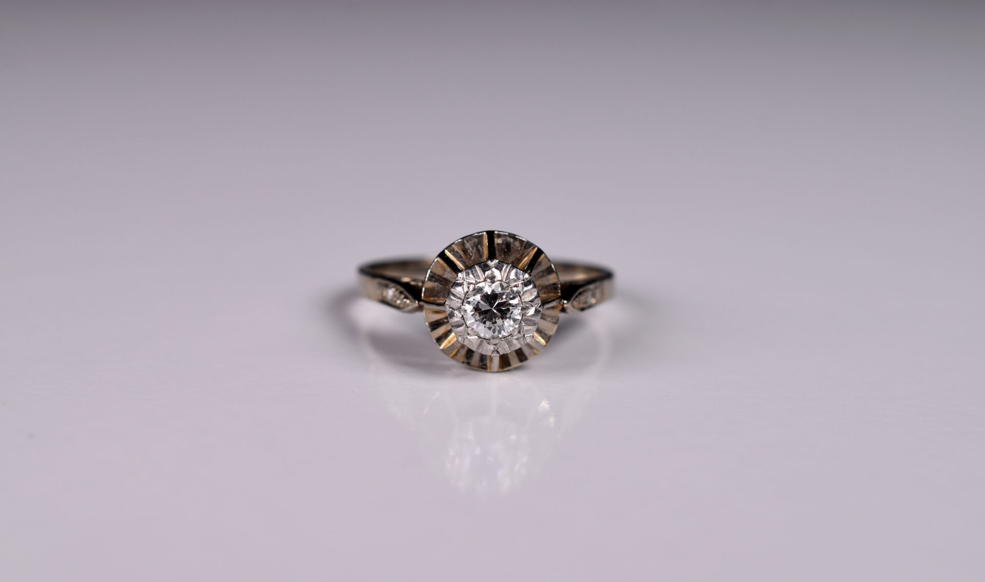 Lot n° 91 Adjugé : 700 € Bague marguerite en or jaune 18K 750/1000e, centrée… Estimation : 650 / 800 €