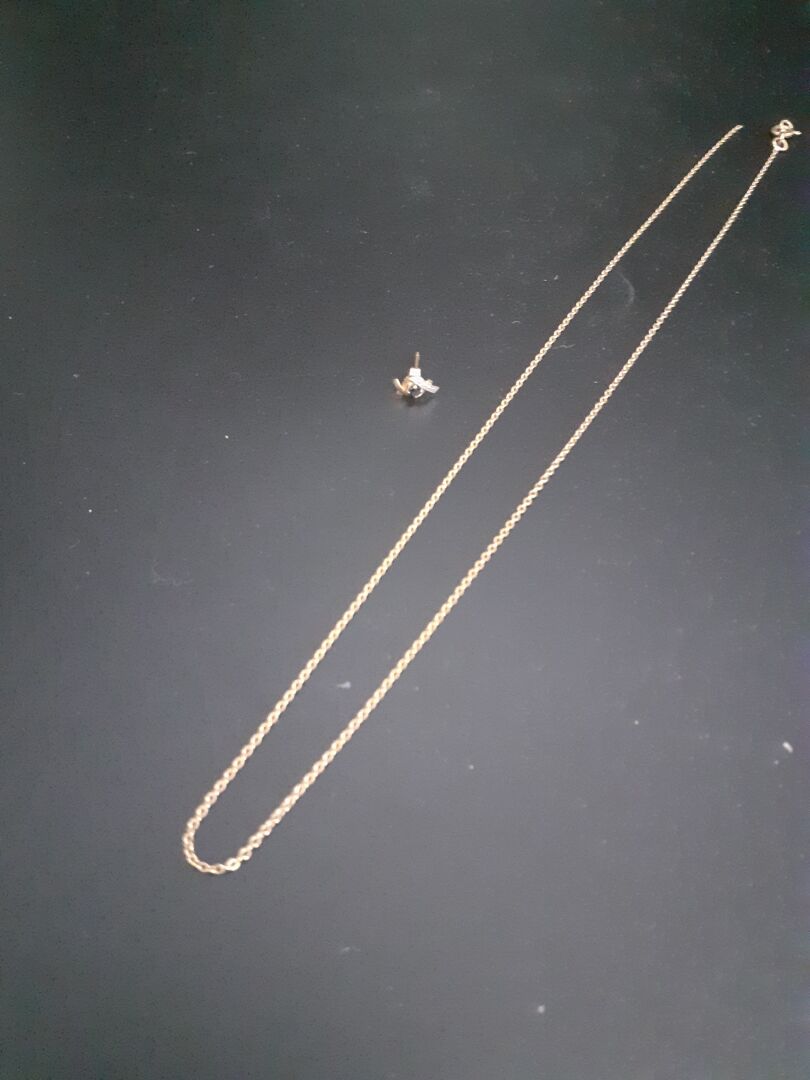 Lot n° 103 Adjugé : 610 € Ensemble en or jaune 18k 750/1000e comprenant une… Estimation : 665 / 735 €