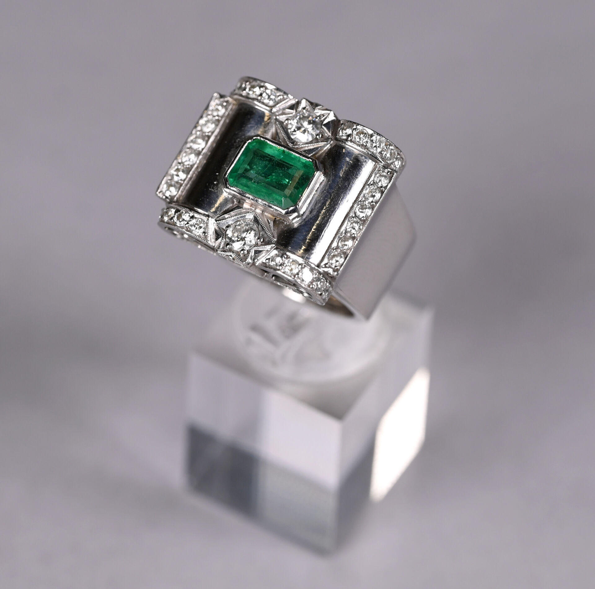 Lot n° 265 Adjugé : 1200 € Imposante bague « tank » en or gris 18k 750/1000e… Estimation : 1000 / 1800 €