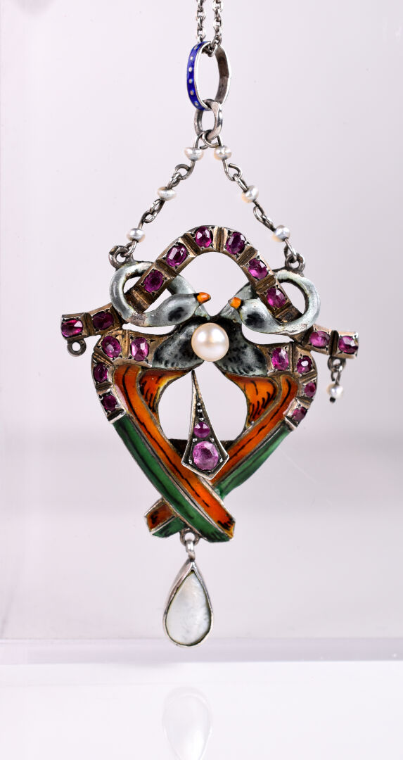 Lot n° 177 Adjugé : 450 € Chaine en argent 800/1000e retenant un pendentif en… Estimation : 250 / 400 €