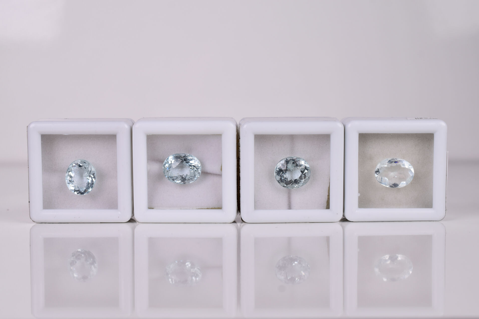 Lot n° 142 Adjugé : 75 € Quatre aigue-marine sur papier, ovales (3,54 – 2,60… Estimation : 60 / 100 €