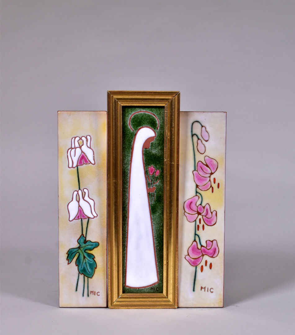 Lot n° 222 Adjugé : 15 € Trois carreaux de terre cuite émaillés en polychromie… Estimation : 20 / 30 €