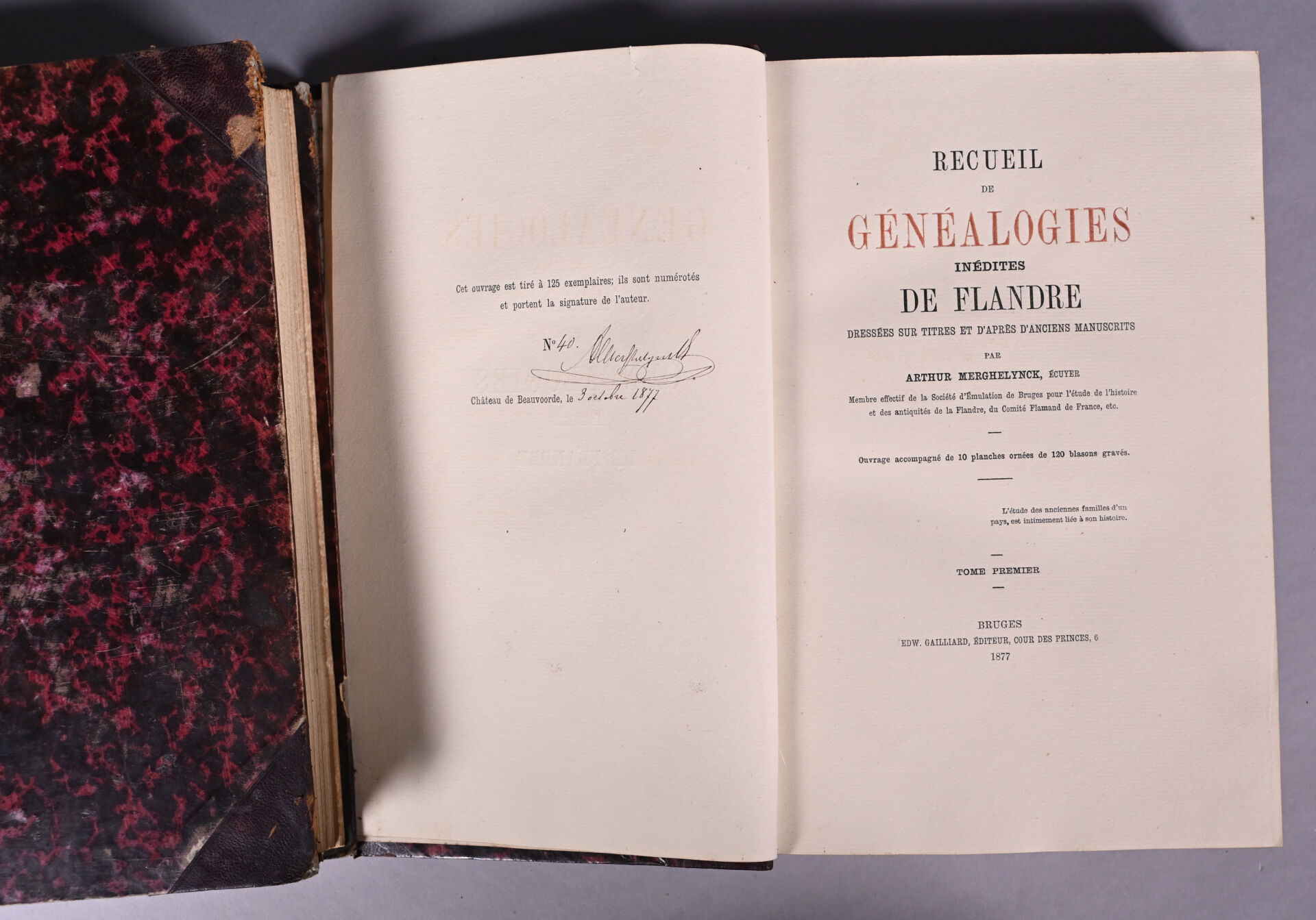 Lot n° 122 MERGHELYNCK (Arthur). RECUEIL DE GÉNÉALOGIES INÉDITES DE FLANDRE… Estimation : 150 / 200 €