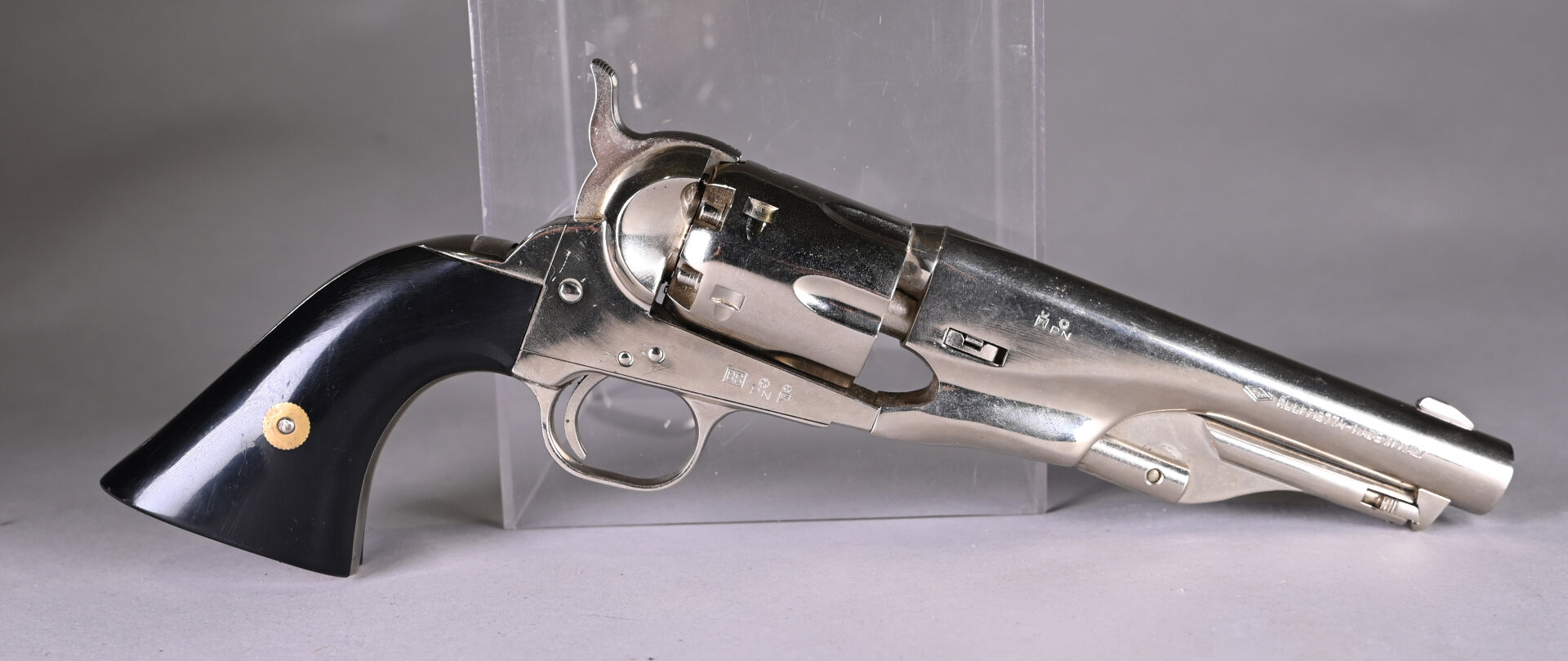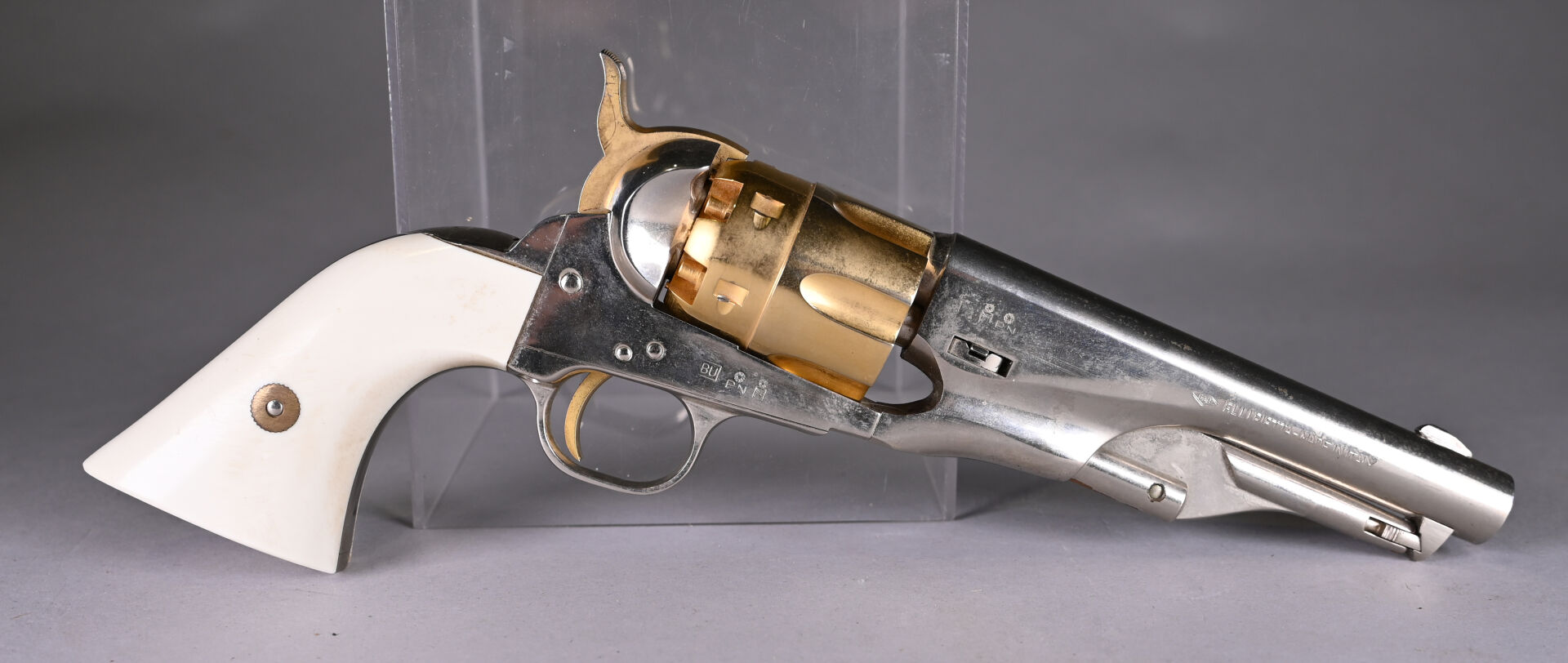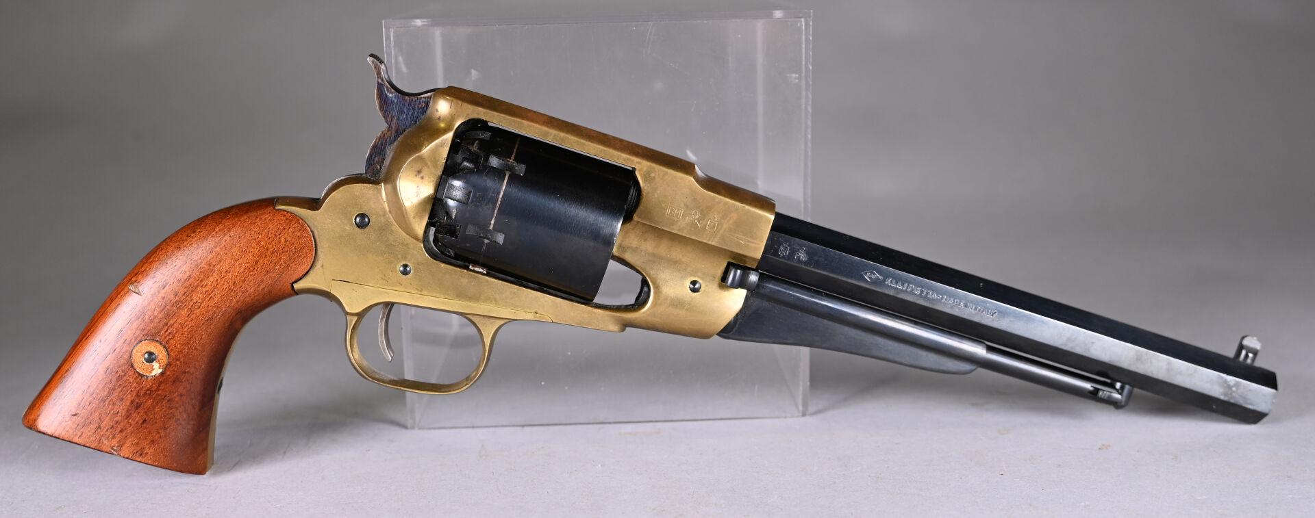 Lot n° 30 Réplique italienne d’un révolver Remington 1858, carcasse fermée,… Estimation : 180 / 200 €