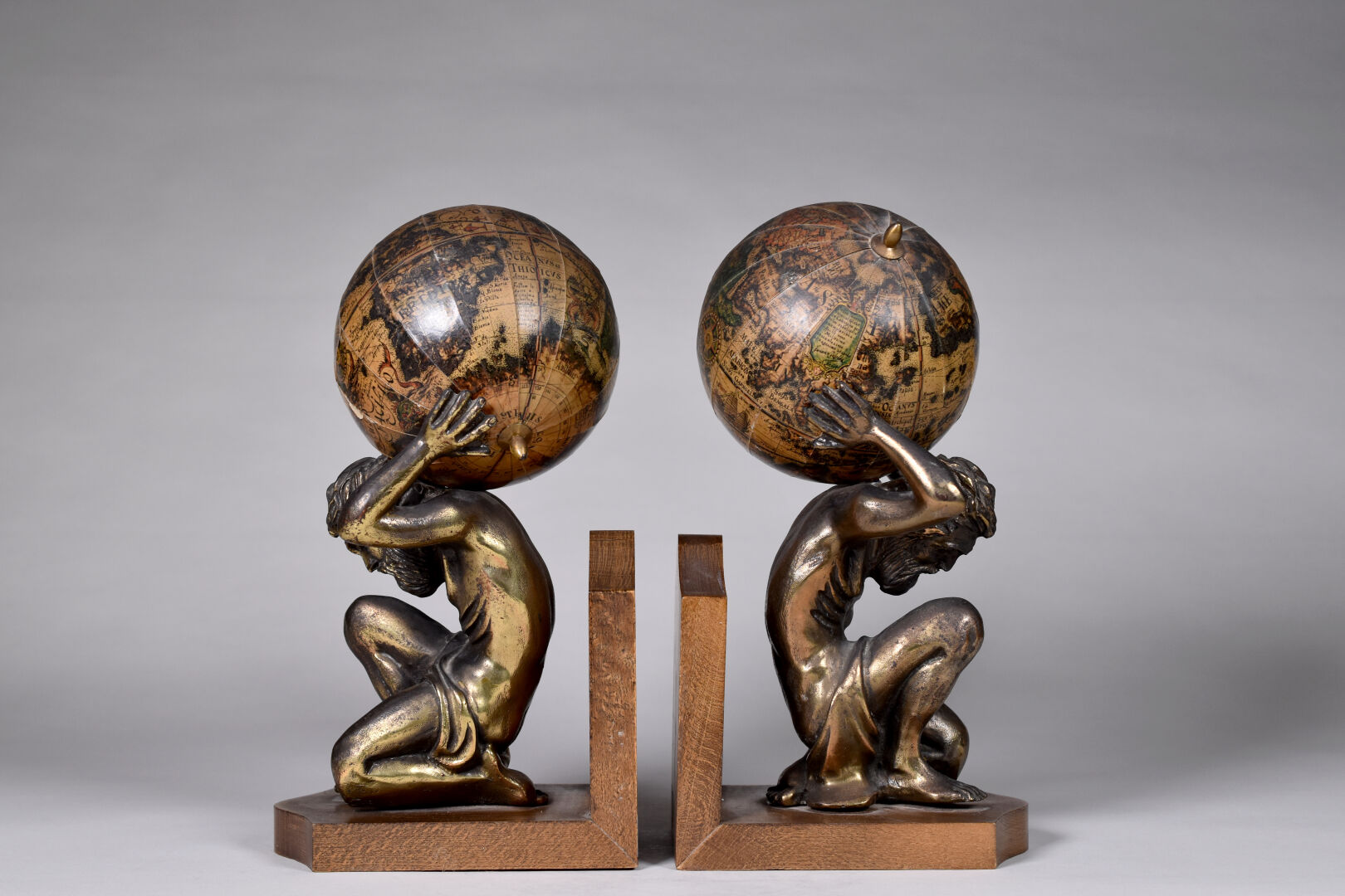 Lot n° 153 Adjugé : 90 € Pare de serre-livres en laiton et métal lithographié… Estimation : 40 / 80 €