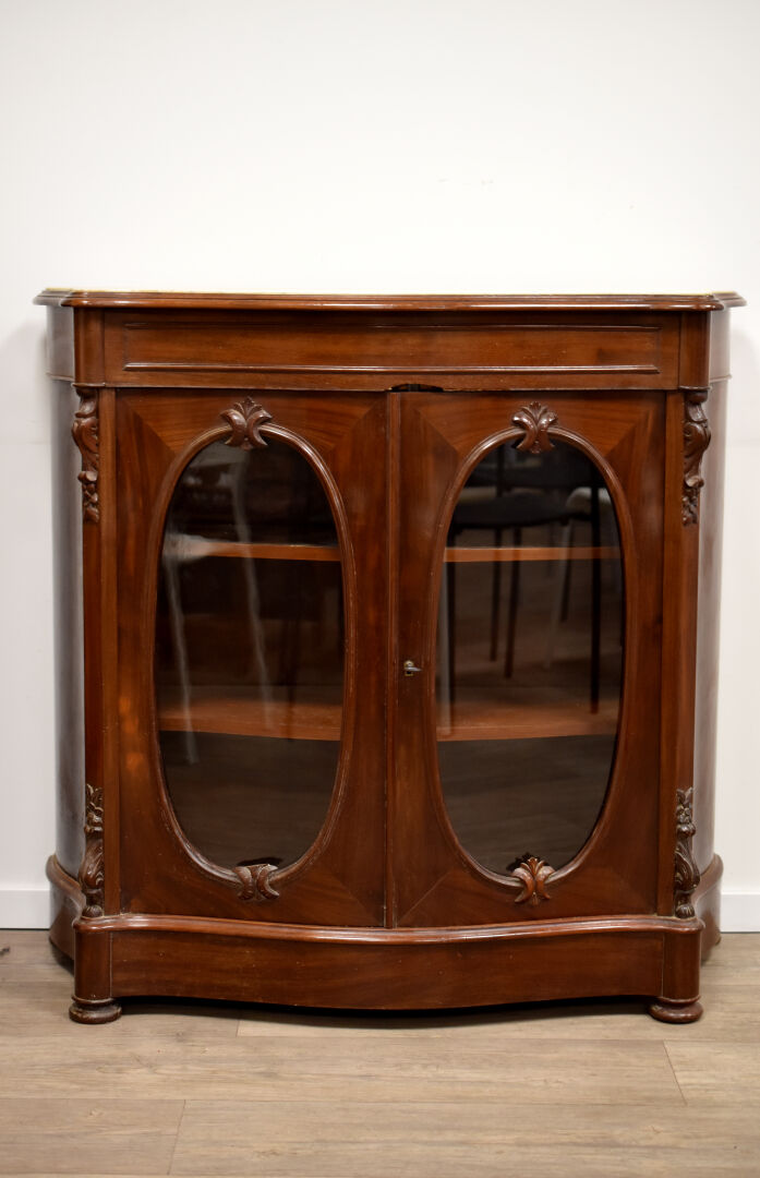 Lot n° 102 Adjugé : 90 € Meuble d’entre-deux à façade légèrement galbée en placage… Estimation : 70 / 120 €