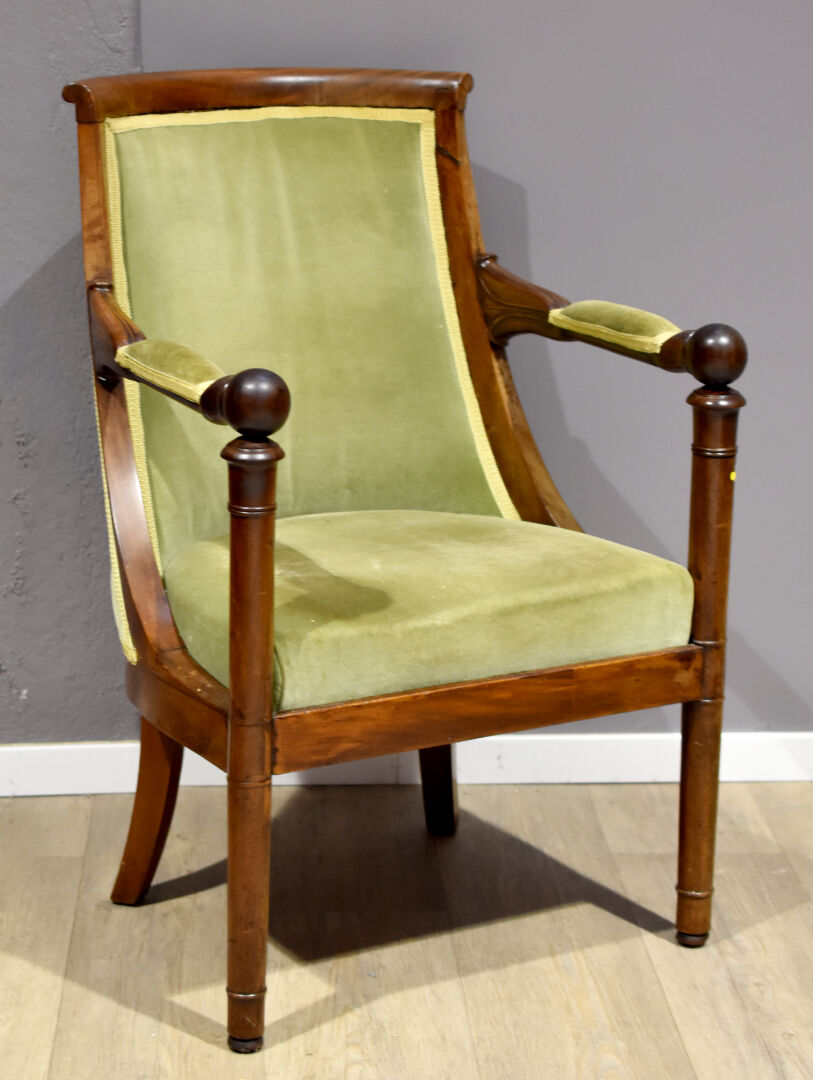 Lot n° 130 Adjugé : 50 € Fauteuil en acajou (accidenté). Epoque Empire. Haut. :… Estimation : 60 / 80 €
