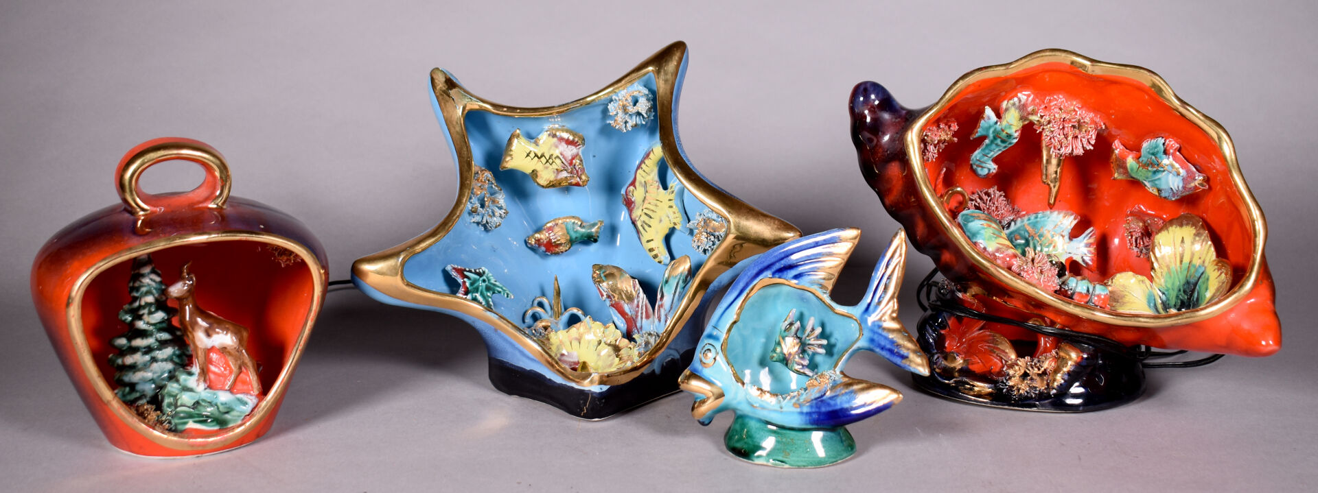 Lot n° 174 Adjugé : 111 € VALLAURIS. Ensemble de 4 lampes (une sans l’électricité)… Estimation : 70 / 80 €