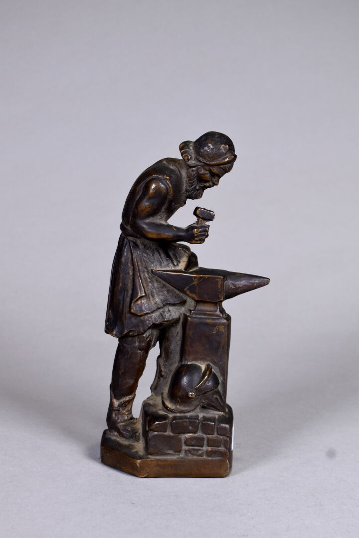 Lot n° 408 Adjugé : 60 € Sujet en bronze patiné brun représentant un forgeron.… Estimation : 80 / 100 €