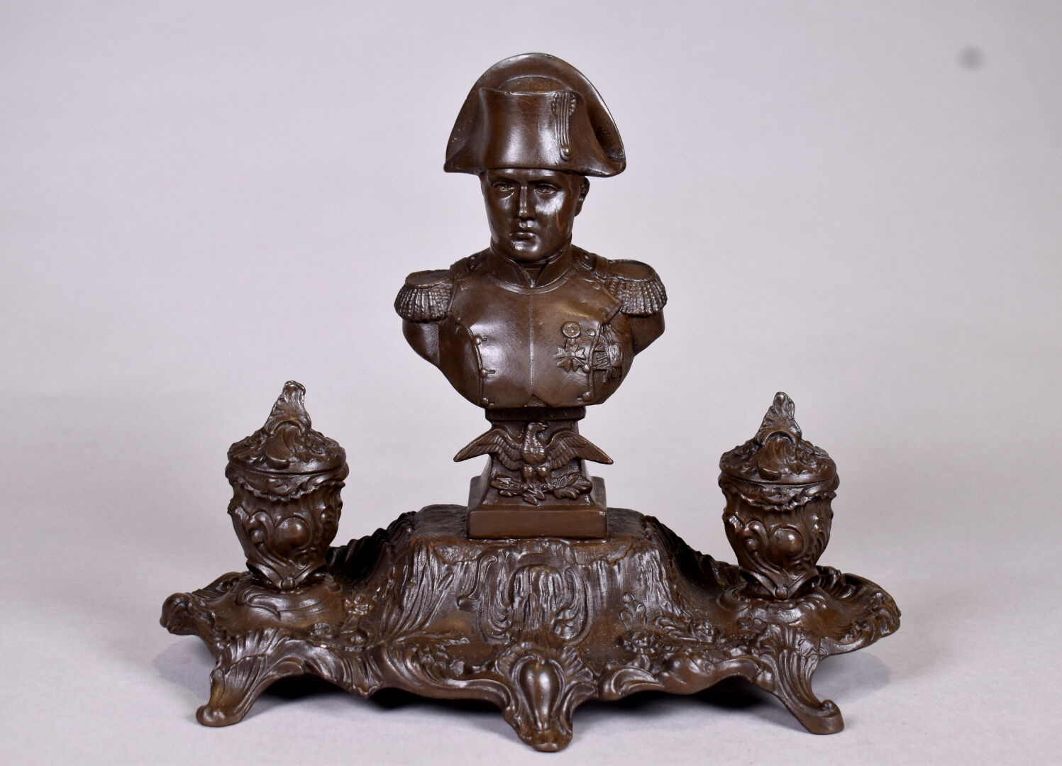 NOS LOTS EN VENTE AUX ENCHÈRES Lot n° 146 Adjugé : 40 € ODO. Carillon automate en bois de placage. Avec… Estimation : 30 / 40 € Lot n° 145 Adjugé : 20 € Ensemble soit un necessaire de bureau en palissandre… Estimation : 20 / 40 € Lot n° 144 Adjugé : 90 € Jean-Louis DOMECQ (1920-1983) – JIELDE. Lampe d’atelier à… Estimation : 100 / 120 € Lot n° 143 Adjugé : 70 € Mobilier de salon en bois fruitier, les accotoirs… Estimation : 80 / 120 € Lot n° 142 Adjugé : 20 € Petite table d’appoint en bois noirci à décor… Estimation : 30 / 40 € Lot n° 141 Adjugé : 40 € Paire de serre-livre en bois sculpté figurant des… Estimation : 30 / 60 € Lot n° 140 Adjugé : 5 € Cravache en bois et cuir tressé (usures, petit… Estimation : 5 / 10 € Lot n° 138 Adjugé : 70 € Encrier en régule patiné brun à décor d’un… Estimation : 50 / 70 € Lot n° 136 Adjugé : 15 € Garniture de cheminée soit une paire de chandeliers… Estimation : 20 / 40 € Page1 Page2 Page3 Page4 Page5