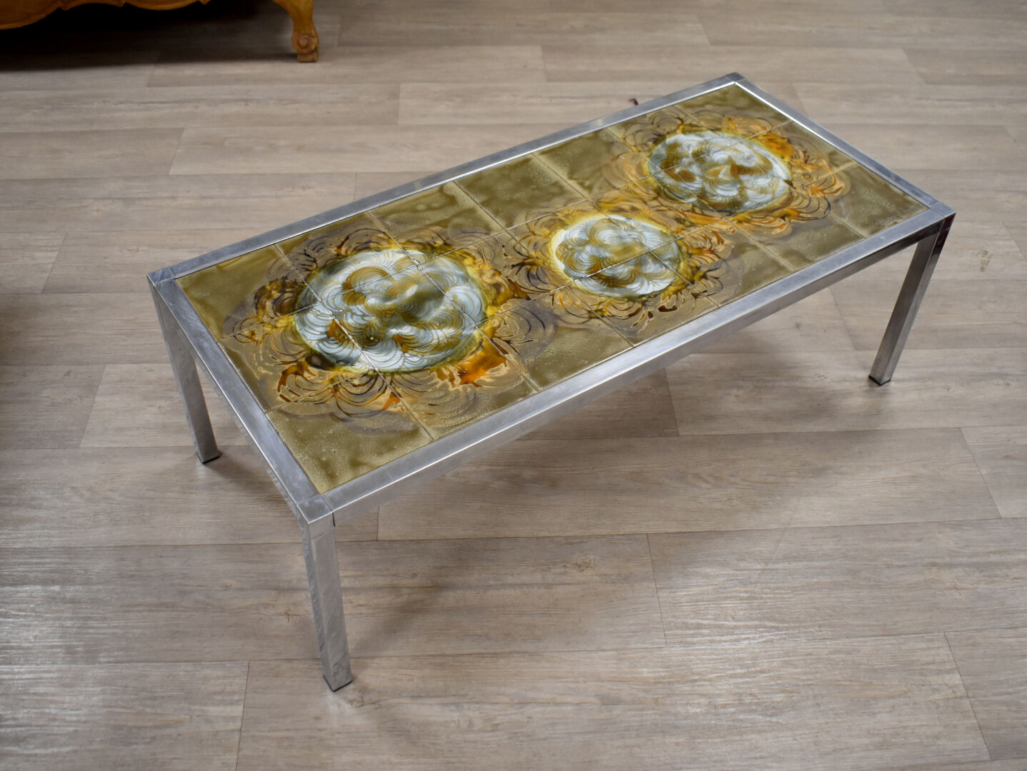 Lot n° 396 Adjugé : 60 € Table basse rectangulaire à structure en métal chromé… Estimation : 70 / 90 €