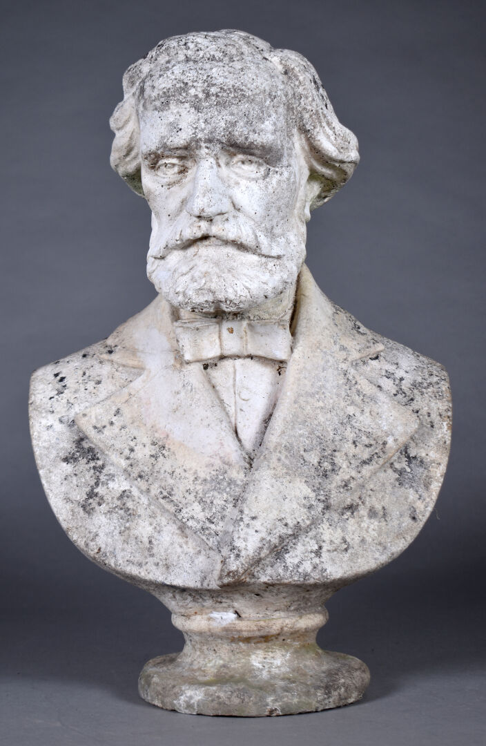 Lot n° 403 Adjugé : 60 € Buste en pierre reconstituée représentant Giuseppe Verdi. Haut.… Estimation : 60 / 80 €