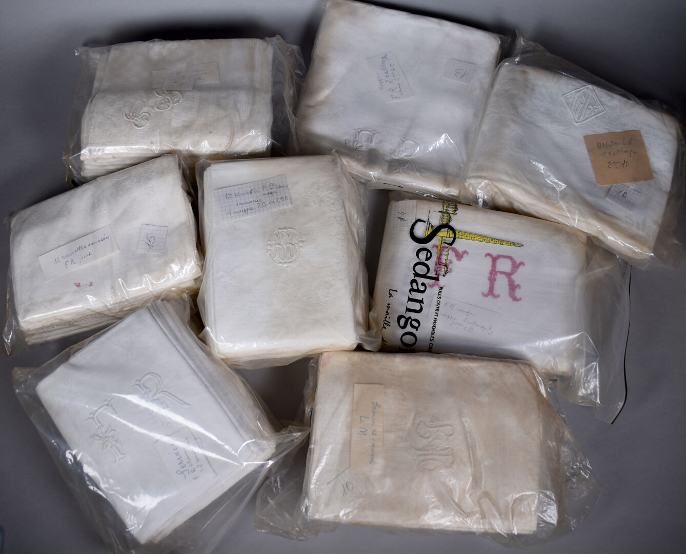 Lot n° 391 Adjugé : 80 € Ensemble de linge brodé (piqures) soit 10 serviettes… Estimation : 30 / 40 €