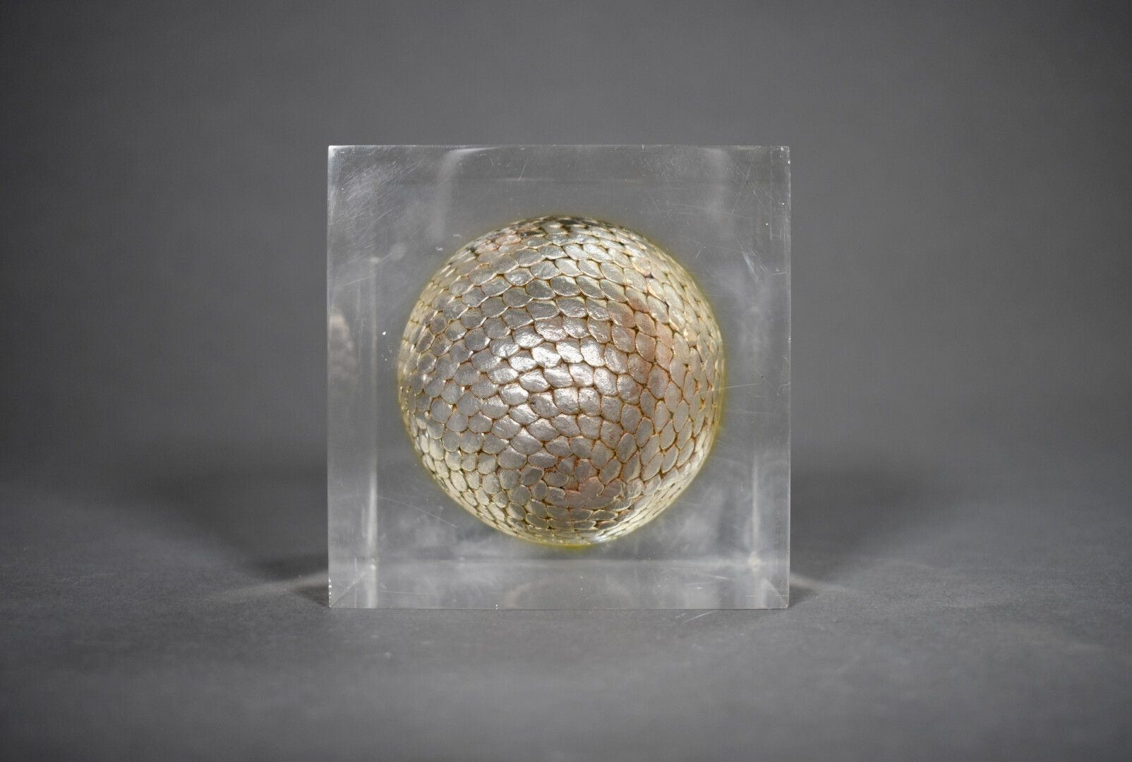 Lot n° 479 Adjugé : 60 € Presse-papier fromé d’une boulle de pétanque dans un… Estimation : 10 / 15 €