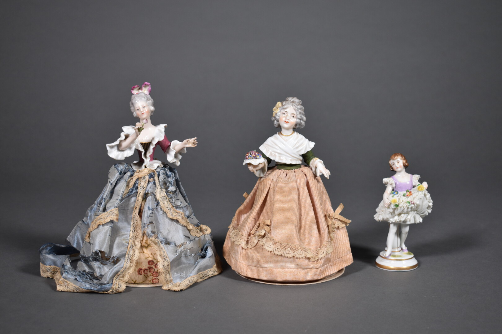 Lot n° 486 Adjugé : 560 € Ensemble en porcelaine soit deux figures d’élégantes, la… Estimation : 20 / 30 €