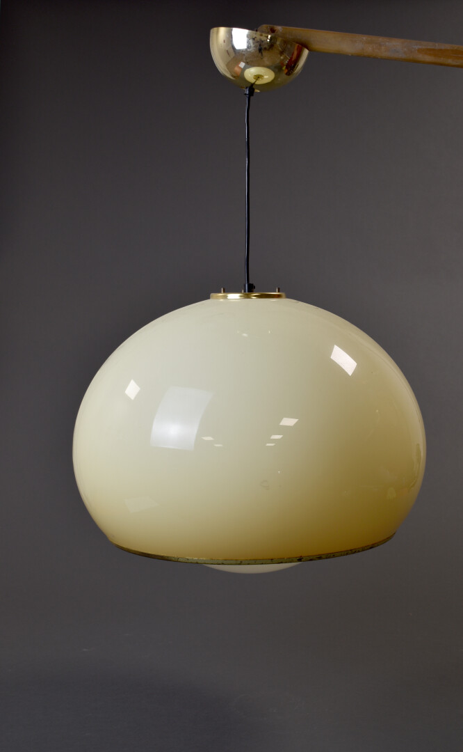 Lot n° 204 Adjugé : 40 € Suspension boule en plastique jaune clair et laiton.… Estimation : 40 / 60 €
