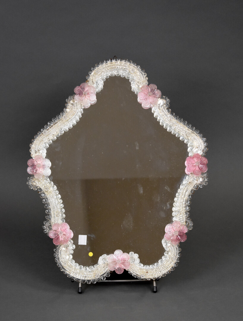 Lot n° 180 Adjugé : 60 € Miroir de forme violonée, l’entourage en verre torsadé… Estimation : 60 / 80 €