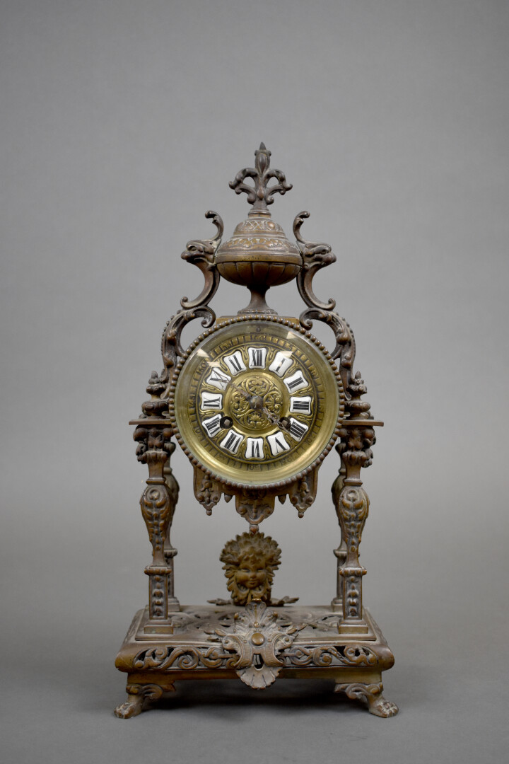 Lot n° 175 Adjugé : 70 € Pendule portique en laiton à décor d’entrelacs ajourés.… Estimation : 40 / 80 €