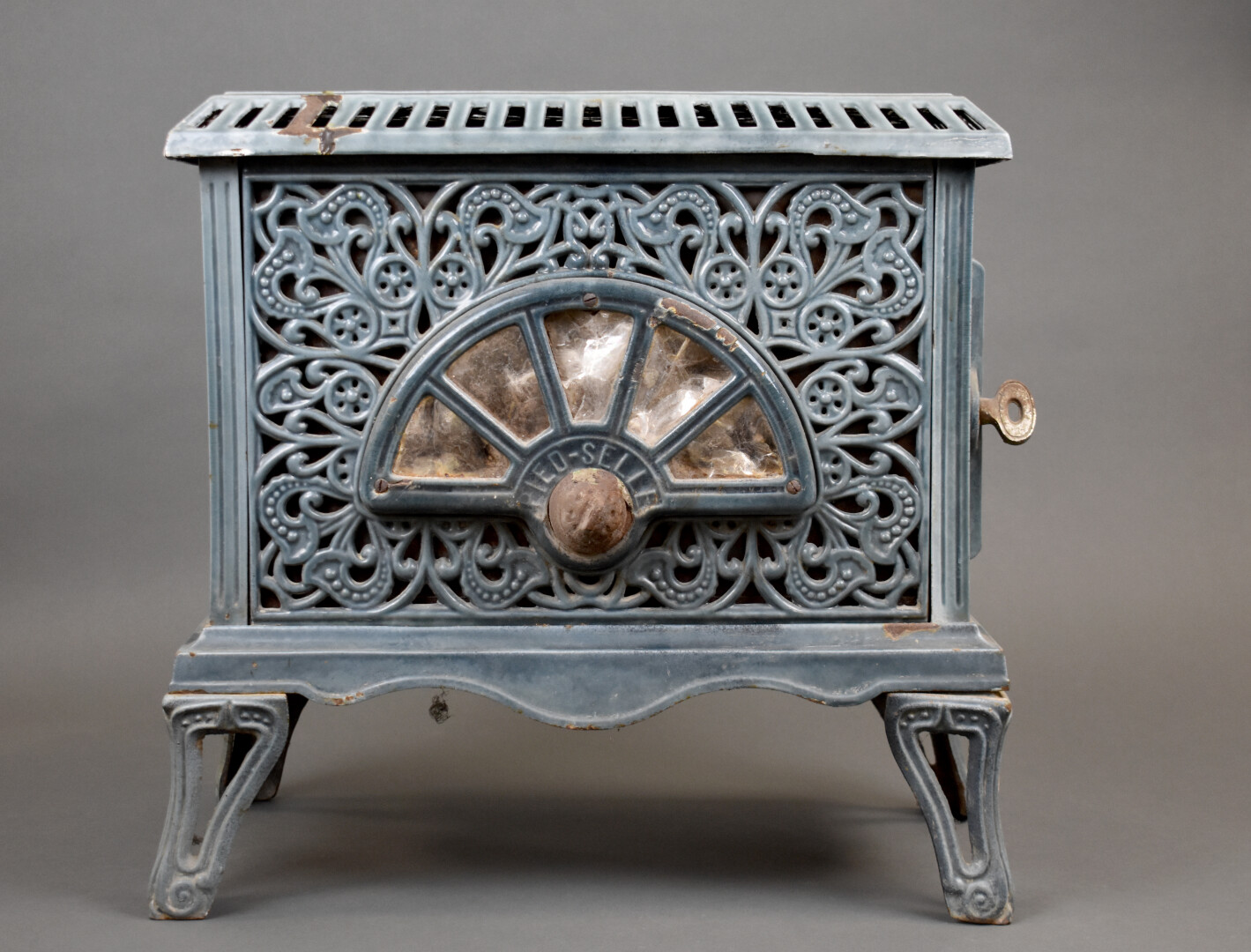 Lot n° 147 Adjugé : 30 € Poele en faïence bleue « Pied-selle brevete S.G.D.G ». Haut.… Estimation : 50 / 60 €