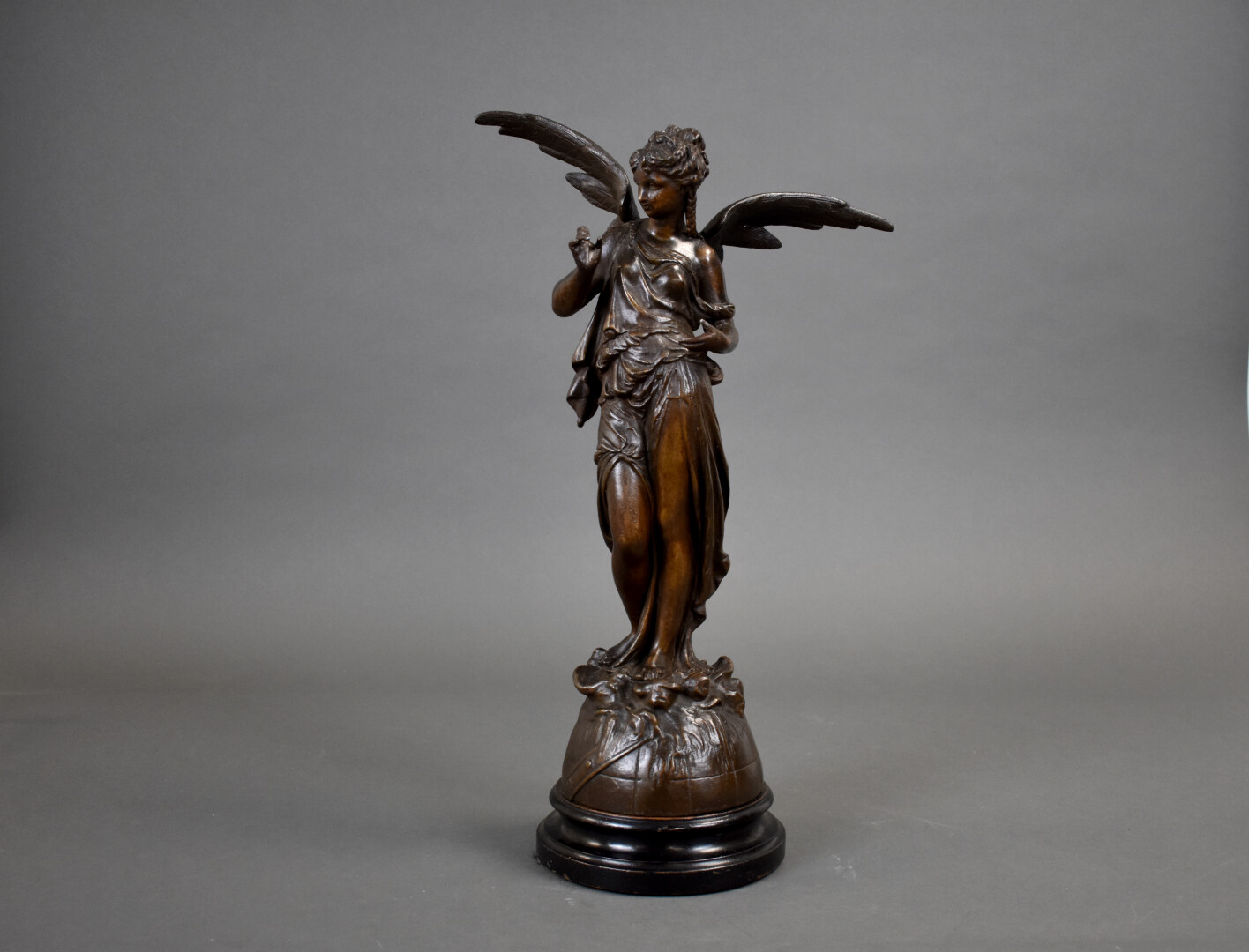 Lot n° 119 Adjugé : 70 € Figure en régule patiné brun représentant une victoire… Estimation : 60 / 80 €