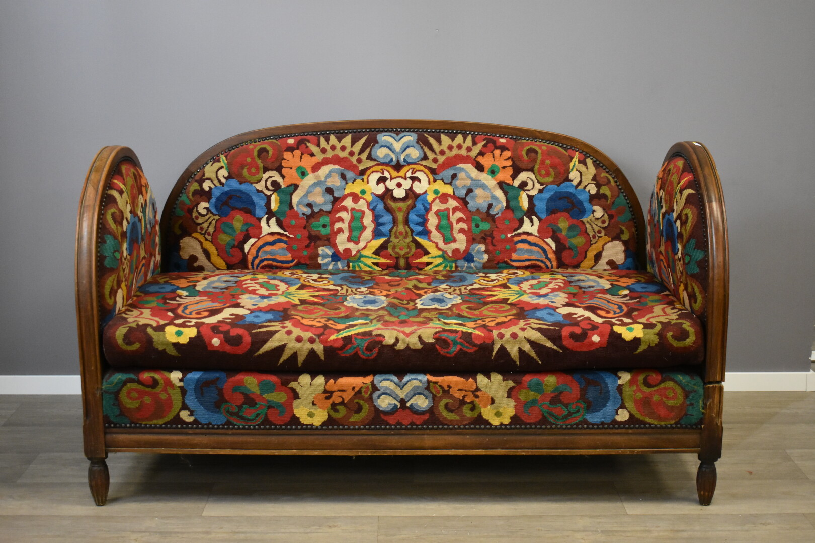 Lot n° 234 Adjugé : 240 € Banquette-lit à système en hêtre mouluré. Elle repose… Estimation : 80 / 120 €