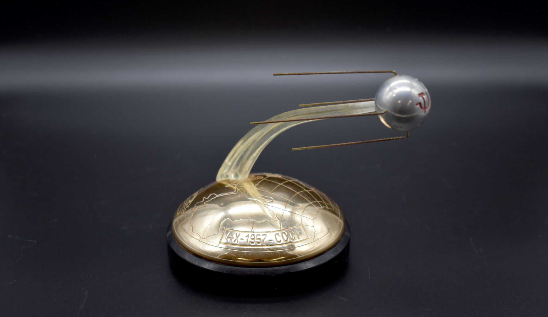 Lot n° 208 Adjugé : 120 € Souvenir commémoratif du lancement du Spoutnik en métal… Estimation : 60 / 80 €