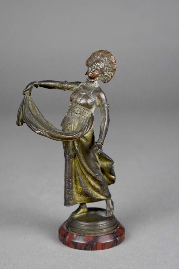 Lot n° 159 Adjugé : 50 € Sculpture en régule patiné bronze représentant une danseuse… Estimation : 15 / 20 €