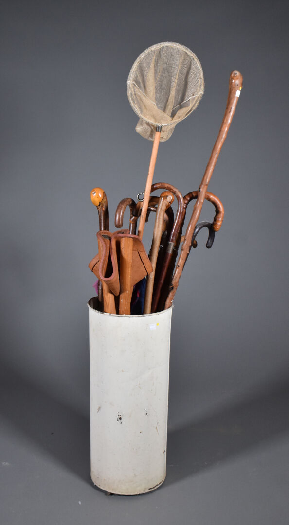 Lot n° 164 Adjugé : 20 € Ensemble soit une collection de cannes, parapluies, épuisette,… Estimation : 20 / 30 €