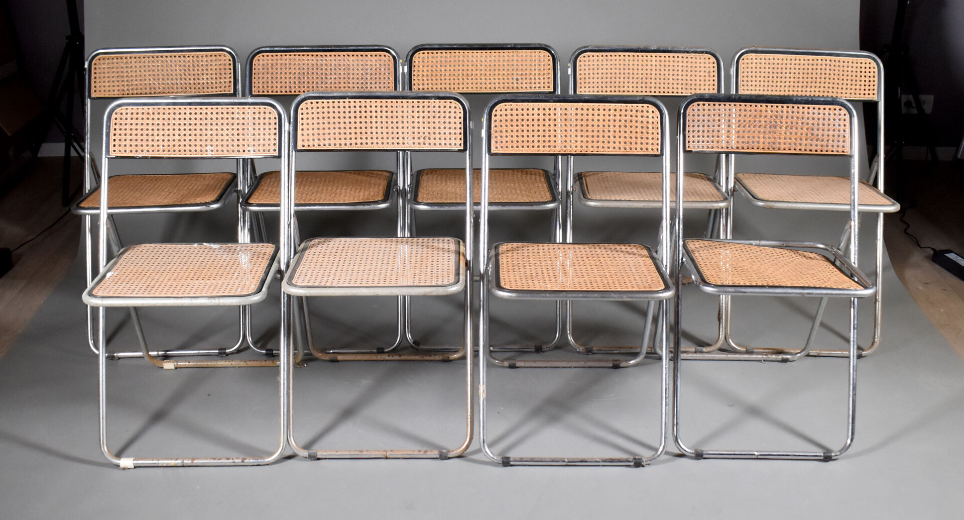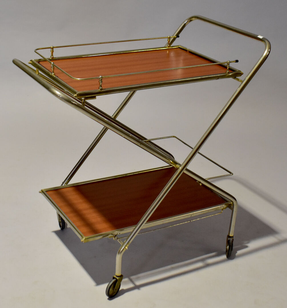 Lot n° 163 Adjugé : 40 € RICHARD. Desserte pliante en métal tubulaire chromé à… Estimation : 40 / 60 €