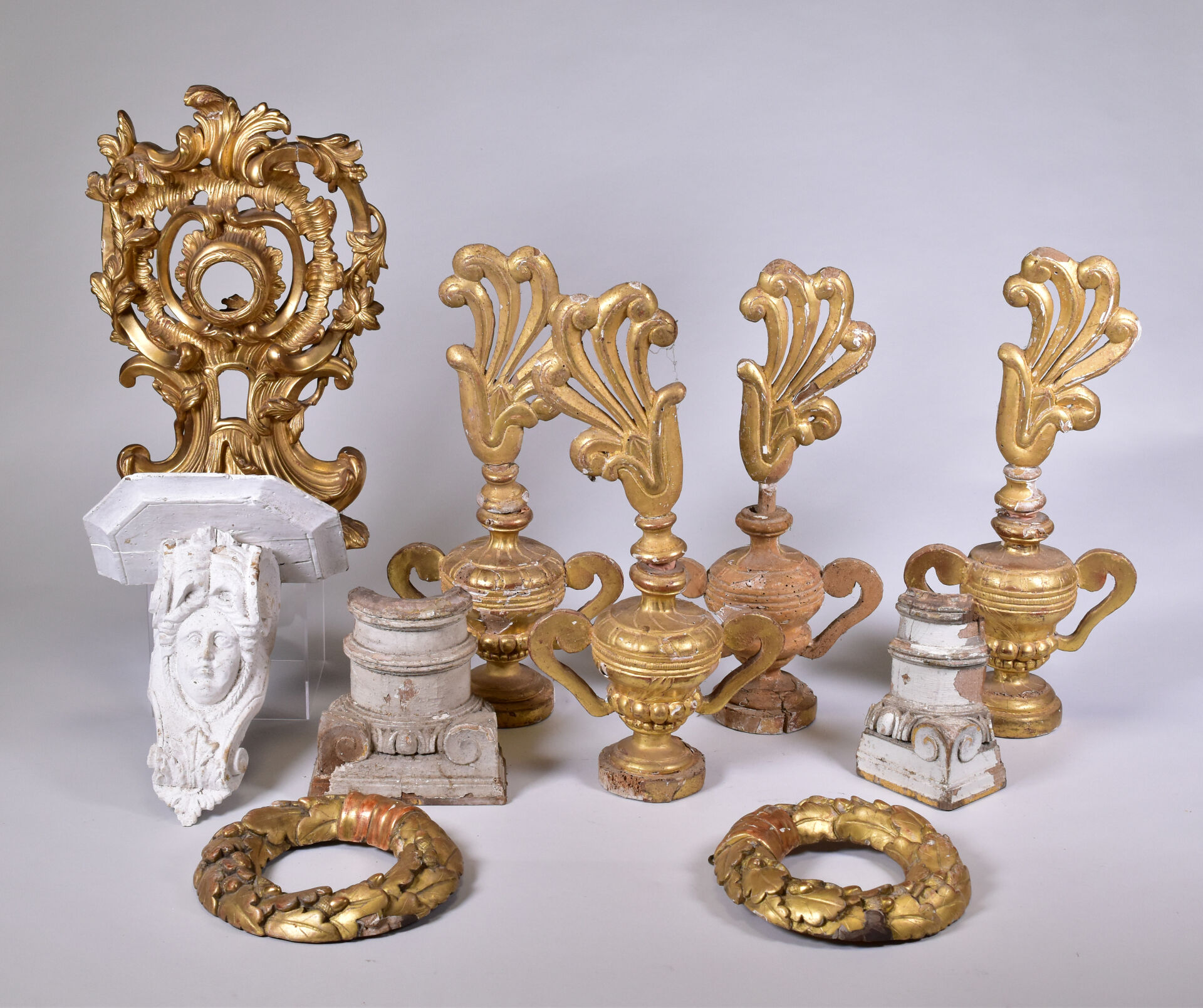 Lot n° 338 Adjugé : 410 € Ensemble d’éléments en bois sculpté, doré et relaqué… Estimation : 80 / 100 €