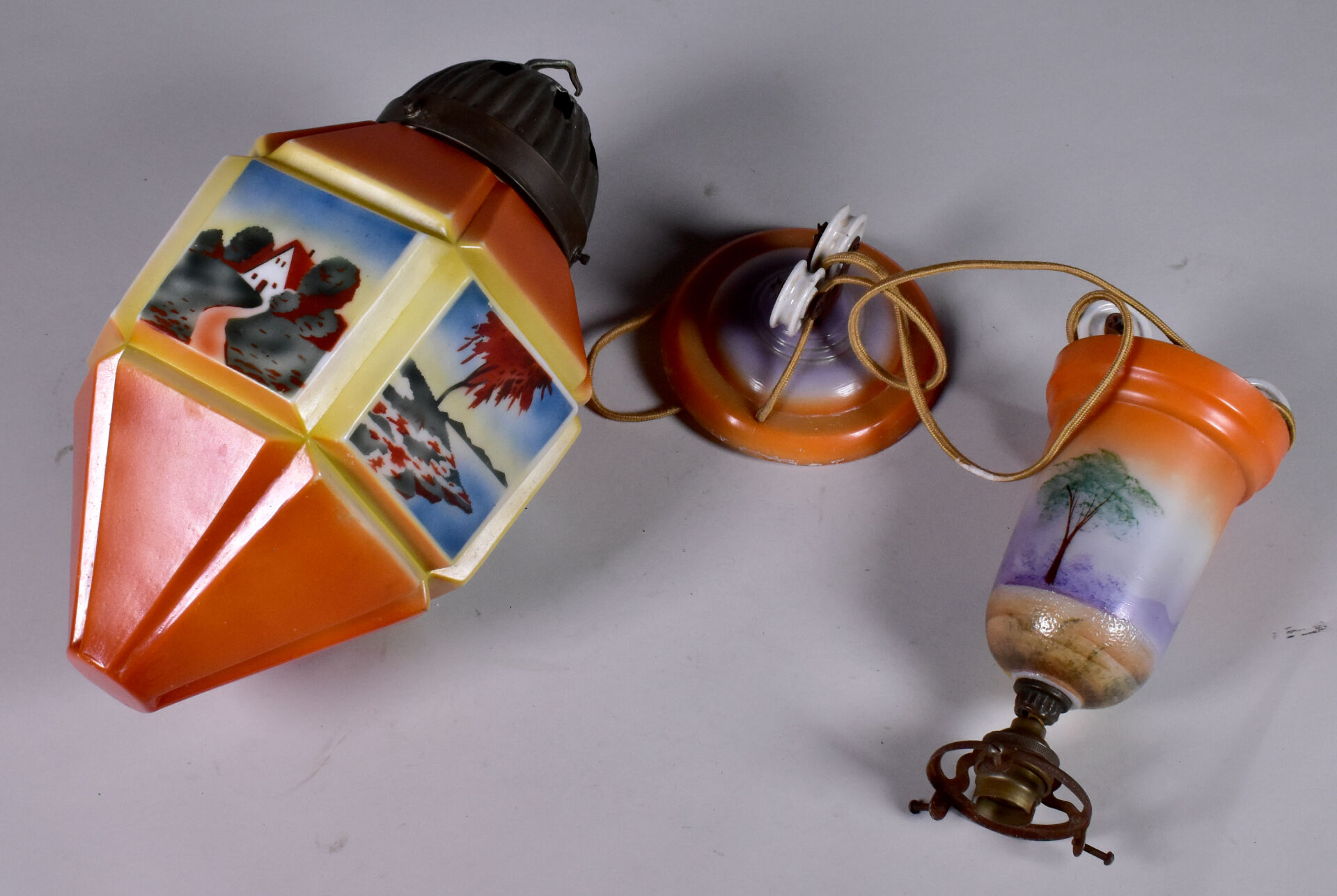 Lot n° 296 Adjugé : 30 € Une lanterne et une suspension « monte-baisse » en opaline… Estimation : 50 / 60 €